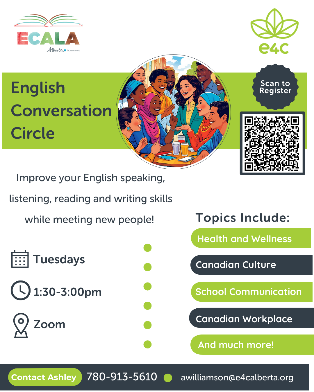 Improve your English speaking, listening, reading and writing skills while meeting new people! Topics are set according to what the learner's goals are. Contact Ashley at...